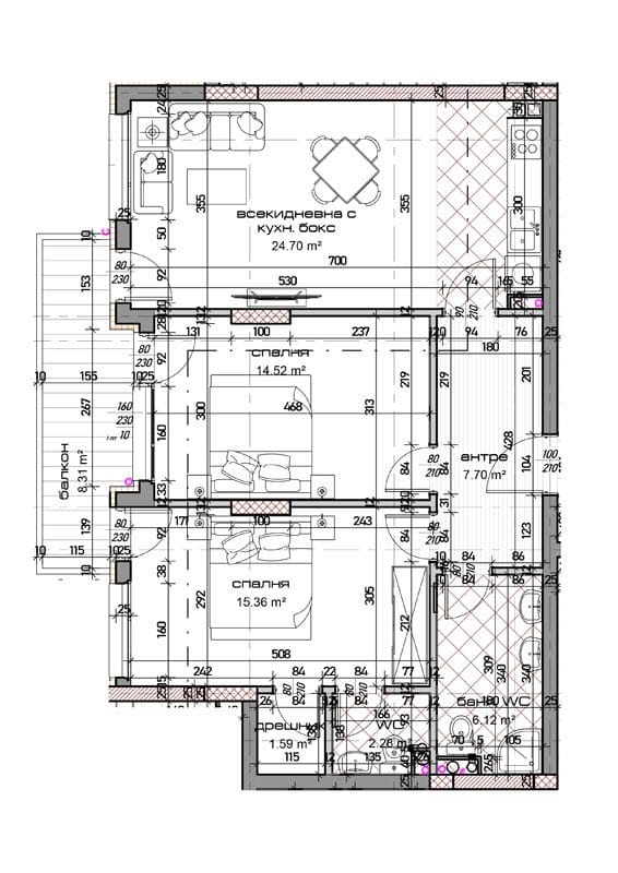 Дневен тракт с кухня – 24,70 м2